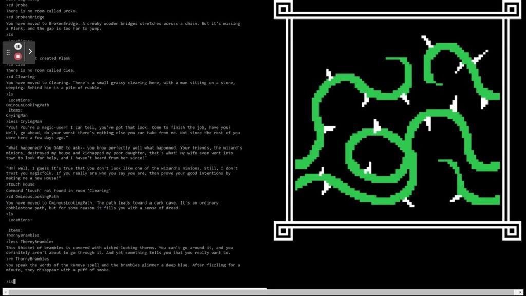 lscdlessみたいな基本コマンドを使いながら“フィールドを移動して謎を解く感覚”。- 子どもでも「探索して宝を探す」みたいな楽しい感覚**で学べる。